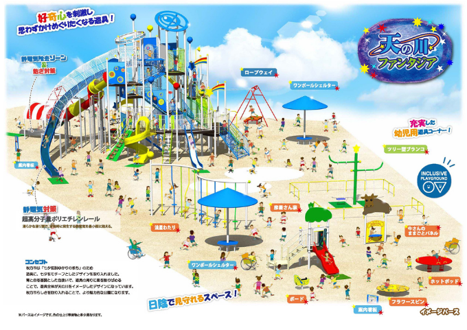 大型複合遊具については、昨年度各市内小学校と連携し、7パターンの絵コンテを提示してのアンケートを実施。実際に市内の小学生たちの声を声を聞き、子どもたちが選んだ遊具を設置することとなりました。
