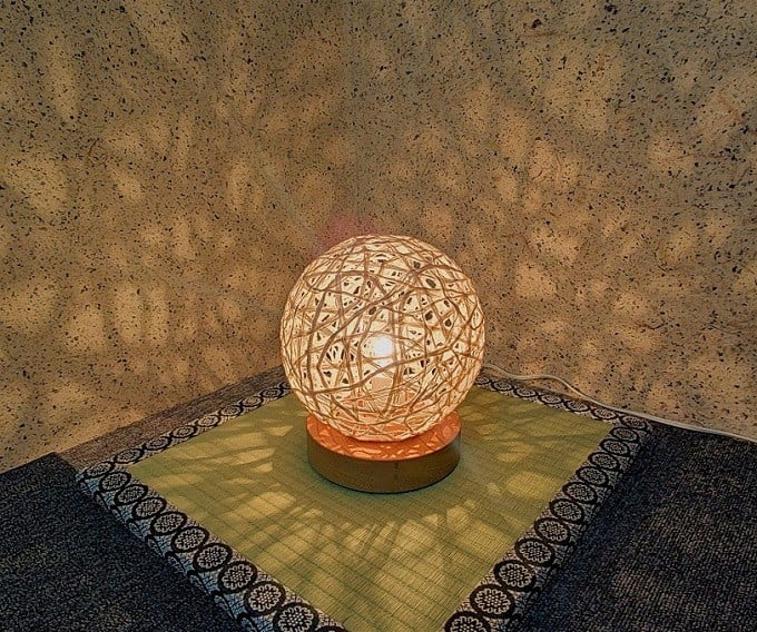 因州和紙を使用した、やさしい光を放つ手作りランプシェード。
