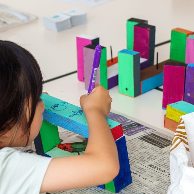 そして、作品が完成してからは島内外17ヶ所で作品展示を行っています。昨年は九州だけでの展示でしたが、今年は大阪・関西万博のイベントで作品展示と子ども向けの海ごみオブジェづくりワークショップを開催したり、横浜のヤマハ発動機さんのリジェラボの共創イベントで展示させていただいたりと、都市部での展示を行うことができました。