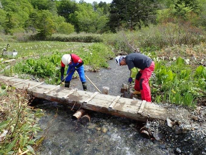 しかし、こうした豊かな山岳環境を未来に引き継ぐためには、登山道の維持・整備が欠かせません。自然の力によって荒れた道や、安全を守るための道標・ロープの補修など、地道な活動を続ける必要があります。