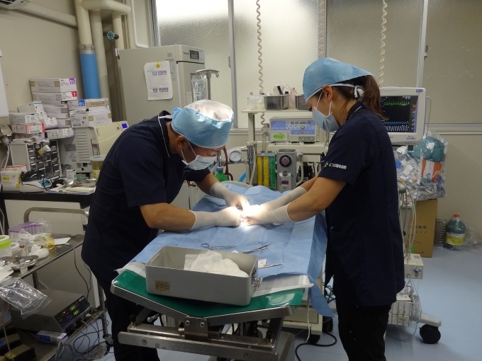保護された犬猫は、感染症やその他の病気がないかなどの検査を行い、病気が見つかった場合は、投薬などの治療を行います。難しい病気を抱えている場合も、獣医師会と連携して、動物病院で専門的な診断と治療を行っています。