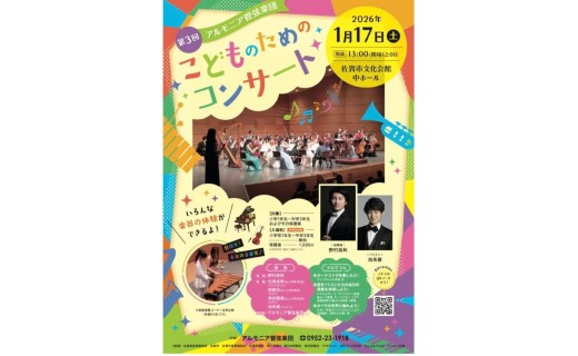 佐賀県では、管弦楽を聴く機会はあっても、管弦楽を「する」機会が限られており、将来の管弦楽奏者を育成する観点で、県内のこどもたちを対象に、オーケストラによる体験・参加型の演奏会を無料で開催したい。