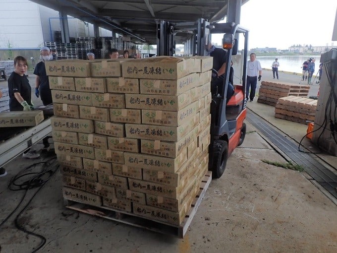 特に山形船団の水揚するスルメイカは釣り上げて直ぐに急速冷凍したもので非常に鮮度が良く、利用しやすいように1尾ずつ凍結されています。