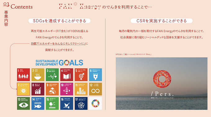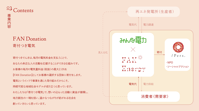 ・電力代の一部を、地域のソーシャルビジネスに寄付する仕組み