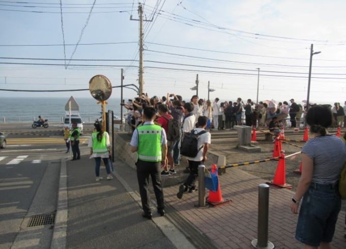 鎌倉高校前駅周辺の踏切は、特に訪日外国人観光客から絶大な人気があり、一部のマナーを知らない観光客による、歩道の滞留や車道へはみ出しての危険な撮影、私有地内への無断立入、ごみのポイ捨てなど、迷惑行為があとを絶ちません。