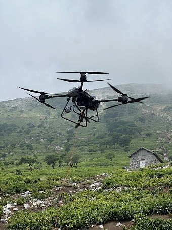 資材総重量は10t以上。運搬用ドローンを用いて伊吹山6合目から8合目付近まで荷揚げしています。