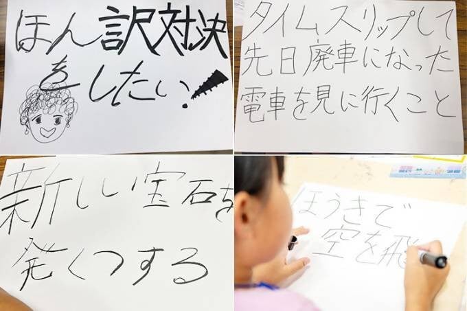 各クラスで、ファシリテーターと実施スタッフが伴走し、「すきなものビンゴ」で関心を楽しく掘り起こし相互承認を体験、「お仕事マップ」で“好き”と社会の仕事をつなげます。最後に一人ひとり「わくわくエンジン®」を言語化します。