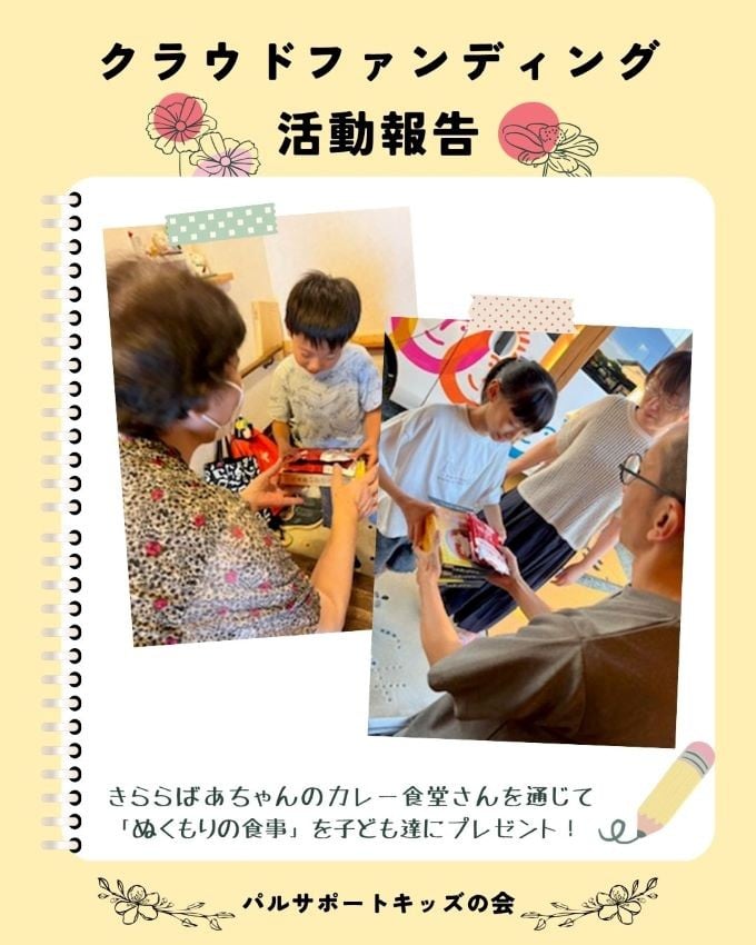 もうすぐクリスマスを迎える、そんな子ども達に「ぬくもりの食事」や「おもちゃ」と「応援の皆様のぬくもり」を届けることで、みんなの愛情を感じて「少しでも笑顔」になって楽しいクリスマスを迎えてもらえればと思います。