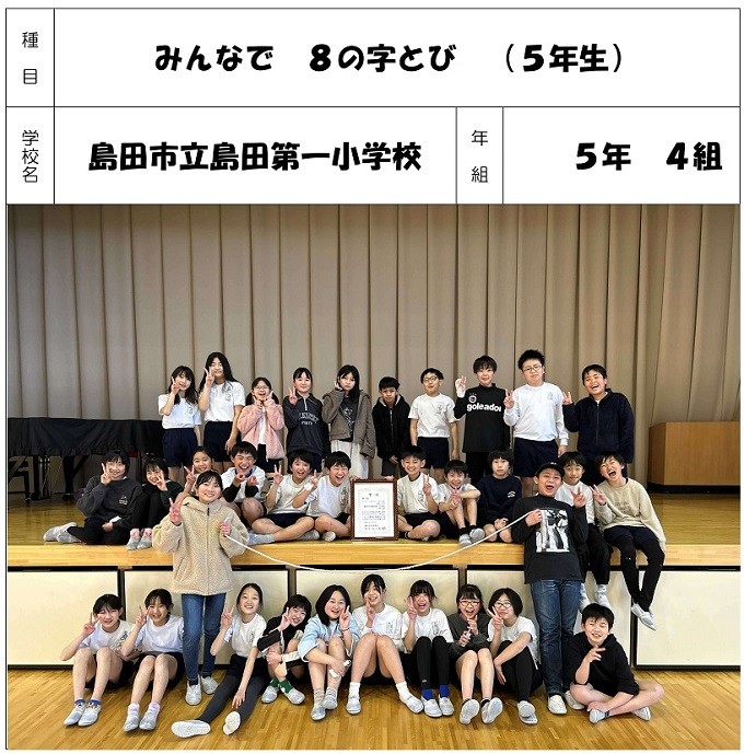 ・4月に8の字を初めて行い、最初は難しくて上手く跳べなかったけど、たくさん練習するうちに跳べるようになってすごくうれしかった。仲間との8の字を全力で行うのはすごく楽しいし、新記録が出た時はすごくうれしかったし、達成感がありました。