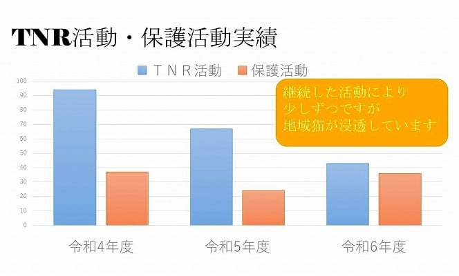 寒川町では、人も猫も幸せなまちとなるように「寒川キャットプロジェクト」を実施しております。TNR活動による猫の頭数抑制など、不幸な猫を増やさない活動は今後も必要と考え、協働して取り組みを行っております。