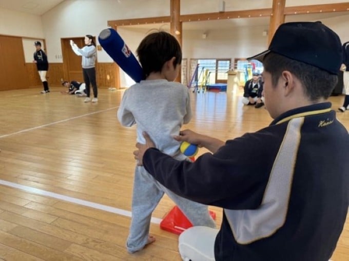 また、毎年12月に小浜市内2~3か所の保育園に出向き、「Tボール」教室を年長児対象に開催しています。「野球人口だけでなく、ソフトボール人口を含めた球技人口のすそ野を拡げたい」。そのような思いを込めて毎年実施し、コロナ禍による中断がありましたが9年目になりました。