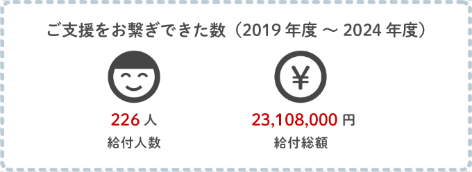 一方、目標を超える寄附をいただいた際は、翌年度以降の「入学応援給付金」として積み立て、継続的な進学支援へとつなげていきます。