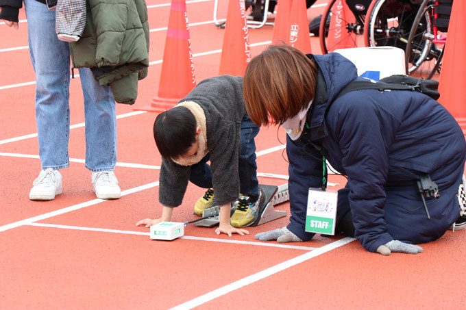 例えば、陸上競技で使われるスタートランプを使ったスタート体験など、聴覚に頼らないスポーツの世界を体感できます。