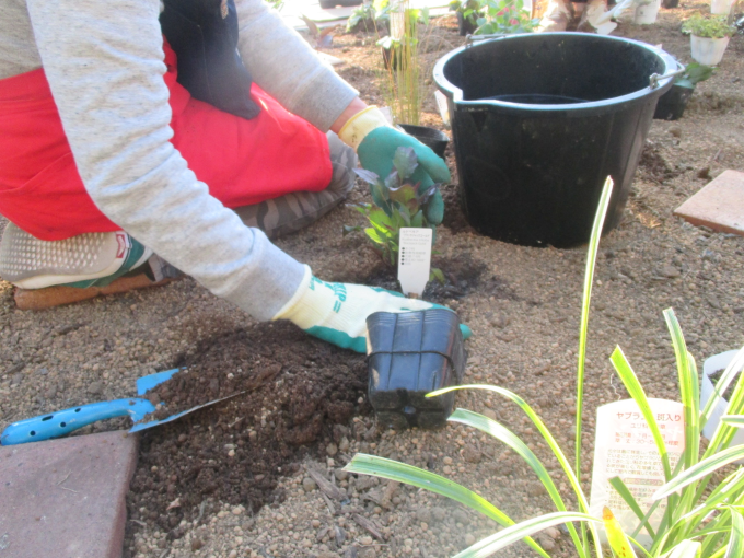 ガーデニング実習を通じた実際の植栽作業