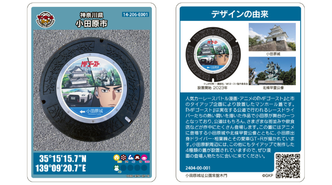 小田原城や相葉瞬・GT-Rが描かれた人気のマンホールカードが配布再開。