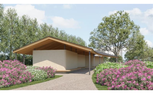リニューアル後のトイレにつきましては、風通しが良く、臭いが溜まりにくい形状かつ満開のツツジを眺めながら憩える居場所として大屋根が特徴的なデザイン案となりました。また、設備につきましてはバリアフリートイレだけでなく、区立公園では初となるファミリートイレを設置します。