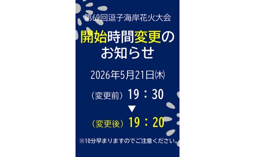 逗子海岸花火大会の開始時間を、19時30分から19時20分に変更することにしました。