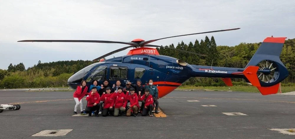 2025年4月、海士町にピースウィンズの災害救助ヘリコプターが常駐するヘリポート格納庫が完成。ピースウィンズが緊急災害支援を行う際の拠点として運用するのに加え、平時はヘリを地域の足として役立てることが目的です。現在は定期的にヘリコプターで医師の輸送を行い、離島医療を支える役割を担っています。海士町で診療所以外の医療の拠点を構築するという取り組みにも支援を行っています。