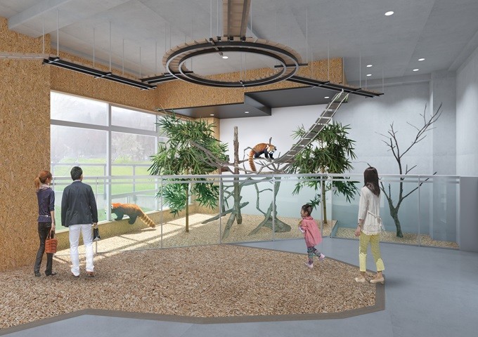 今、円山動物園では4頭のレッサーパンダが高山館で暮らしています。この施設は2012年12月に完成したもので、自然木を多く配置しレッサーパンダが快適に過ごせる設計となっていました。その後、動物園条例に基づき、我々は動物福祉の更なる向上を飼育の柱として取組を進めています。今回はその一環として、レッサーパンダのために、屋内展示場を拡充し、さらに屋外展示場と寝室の出入りを自由とすることで、彼らに“居場所の選択”を自らの意志で決定できるような施設に改修したいと考えています。四季折々のレッサーパンダの生き生きとした姿をご覧いただけるようになることと思っております。