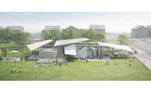 建物の分散配置が生む余白に多様な活動・地形が編み込まれた「にぎわい施設」