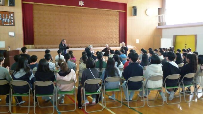 昨年度は、ダニエル・ゲーデさんを中心としたゲーデ弦楽四重奏団が、なごやっ子スクールコンサート・特別プログラムを作成し、山吹小・長須賀小・東築地小・成章小・上社中学校の計5校でコンサートを開催していただきました。