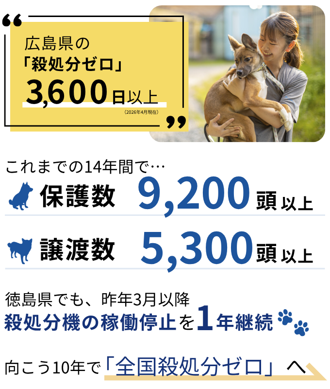 広島は10年、徳島でも1年!殺処分機停止を継続