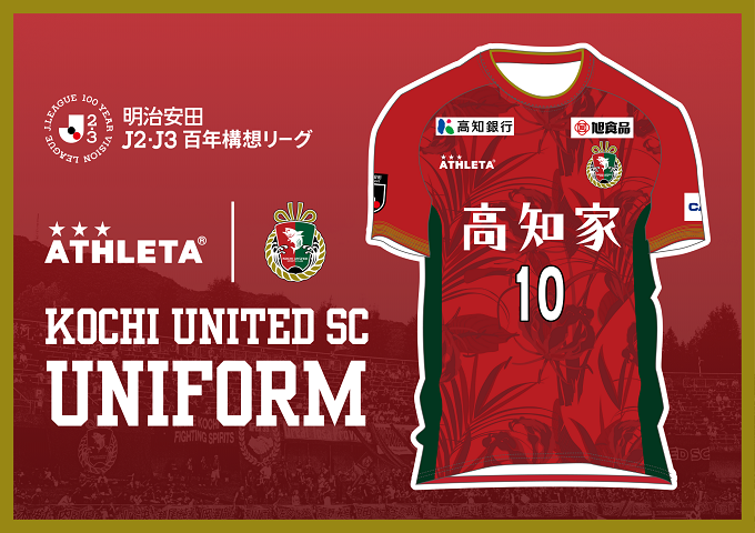 通常サッカークラブの胸に付くロゴは、企業がスポンサー広告として、社名や商品名を表示します。しかし、高知ユナイテッドSCはチームの理念である「地域に愛され、必要とされるクラブ大好きな高知のために高知愛をかたちにする・高知の子どもたちに夢と目標を・スポーツでもっと幸せな高知へ」を体現するため、またこれまでの地域からの応援に感謝を込めて、ユニフォームの顔となる胸に「高知家」ロゴを表示し、高知を愛するひとりひとりから想いを募り、悲願のJリーグの舞台で戦っています。