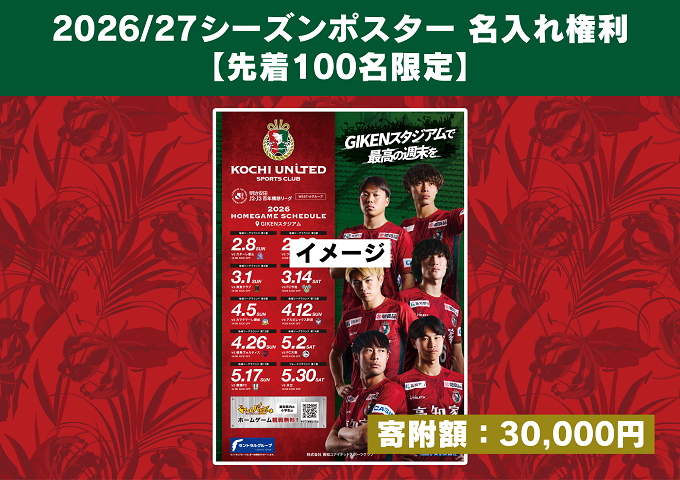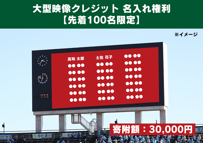 そのような中で、トップチームが更なる活躍が出来る環境を整備し、今後もJリーグの舞台で戦い抜くために、高知を愛するひとりひとりの想いを集結させ、1つのメインスポンサー(高知家)として、Jリーグの舞台で輝く選手たちを後押ししましょう!
