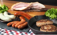提供:丸大食品株式会社【内容】ローストビーフ(モモ)200g、あぶり焼き焼豚210g、黒胡椒ミートローフ180g、ローストビーフソース20g×6袋