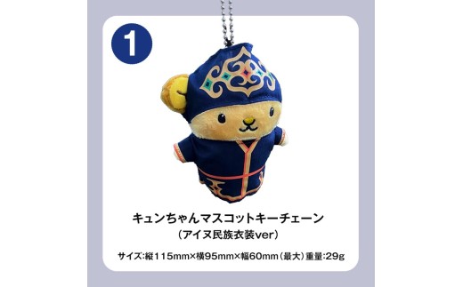 チョイスPayポイントと交換できる品 北海道観光PRキャラクター キュンちゃんグッズセット 【アイヌの民族衣装のキュンちゃんマスコットキーチェーン(北海道限定商品)とオリジナルグッズのセット】 F6S-397