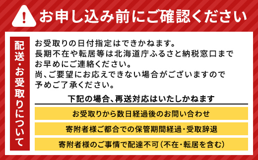 ●北海道内在住の方および個人の方以外(法人等) につきましては、お礼の品は発送されません。あらかじめご了承ください。