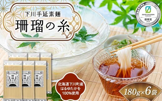 チョイスPayポイントと交換できる品 オール北海道産材料を使用した小麦の風味あふれる手延べ素麺 下川手延素麺 珊瑠の糸 1,080g(化粧箱入)《食絶景北海道×ゼロカーボンアワード受賞》 北海道下川町産小麦はるゆたか100%使用 バイオ炭の農地施用 日本最北の手延べ素麺 はるお製麺 ギフト 贈り物 F6S-482