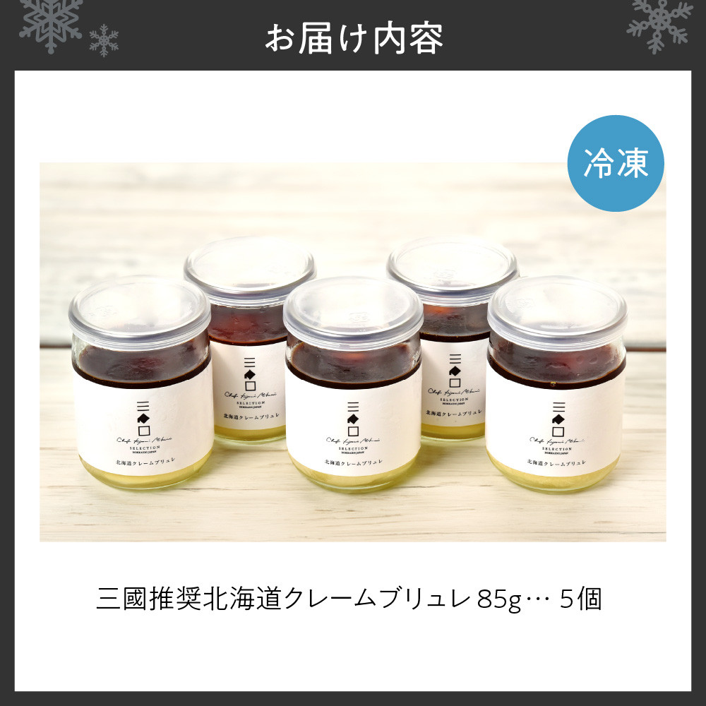 ■関連キーワード: 北海道産 クレームブリュレ 85g×5個 フレンチ 巨匠 三國清三 推奨 クリームブリュレ スイーツ デザート お菓子 菓子 洋菓子 ギフト プレゼント 贈答 贈り物 冷凍 北海道 札幌市