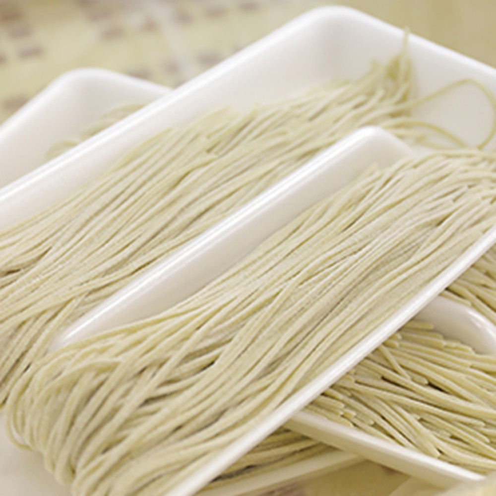 更科粉(でんぷん質)特有の強い歯応えを活かした細切り仕上げ。