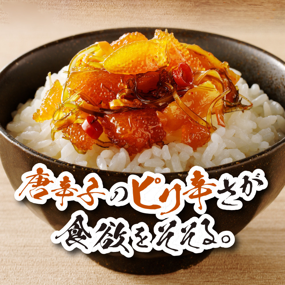 スルメと昆布の旨味がしっかりしみ切り干し大根の歯ごたえ、そしてコリコリとした数の子と大根の歯ごたえがたまりません。また唐辛子のピリ辛さがさらに食欲をそそります。