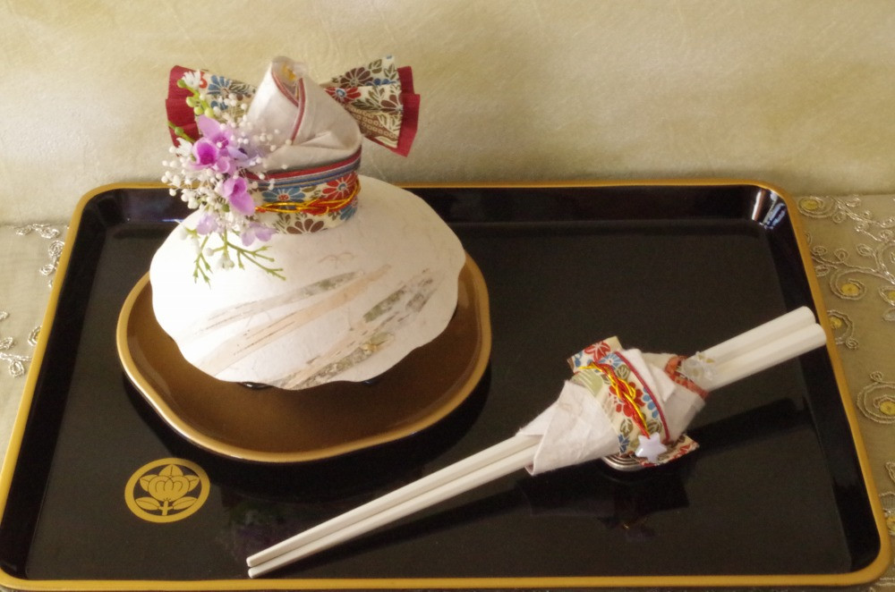 市制執行100周年記念といたしまして、札幌の花であるスズランや札幌の木であるライラックのアーティフィシャルフラワーを取り入れ、プリザーブドフラワーをちりばめたミニブーケをお付けいたします。新たなコロナ対策としての飛沫防止食器カバーと箸カバーの和紙人形です。
