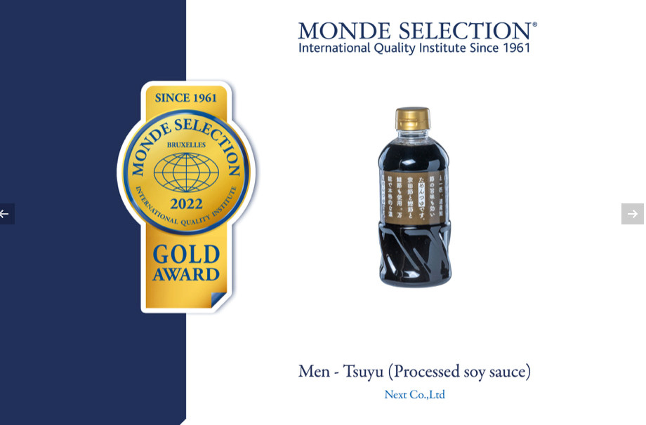 北海道産さけ節使用 めんつゆは、2022年度モンドセレクション金賞を受賞。