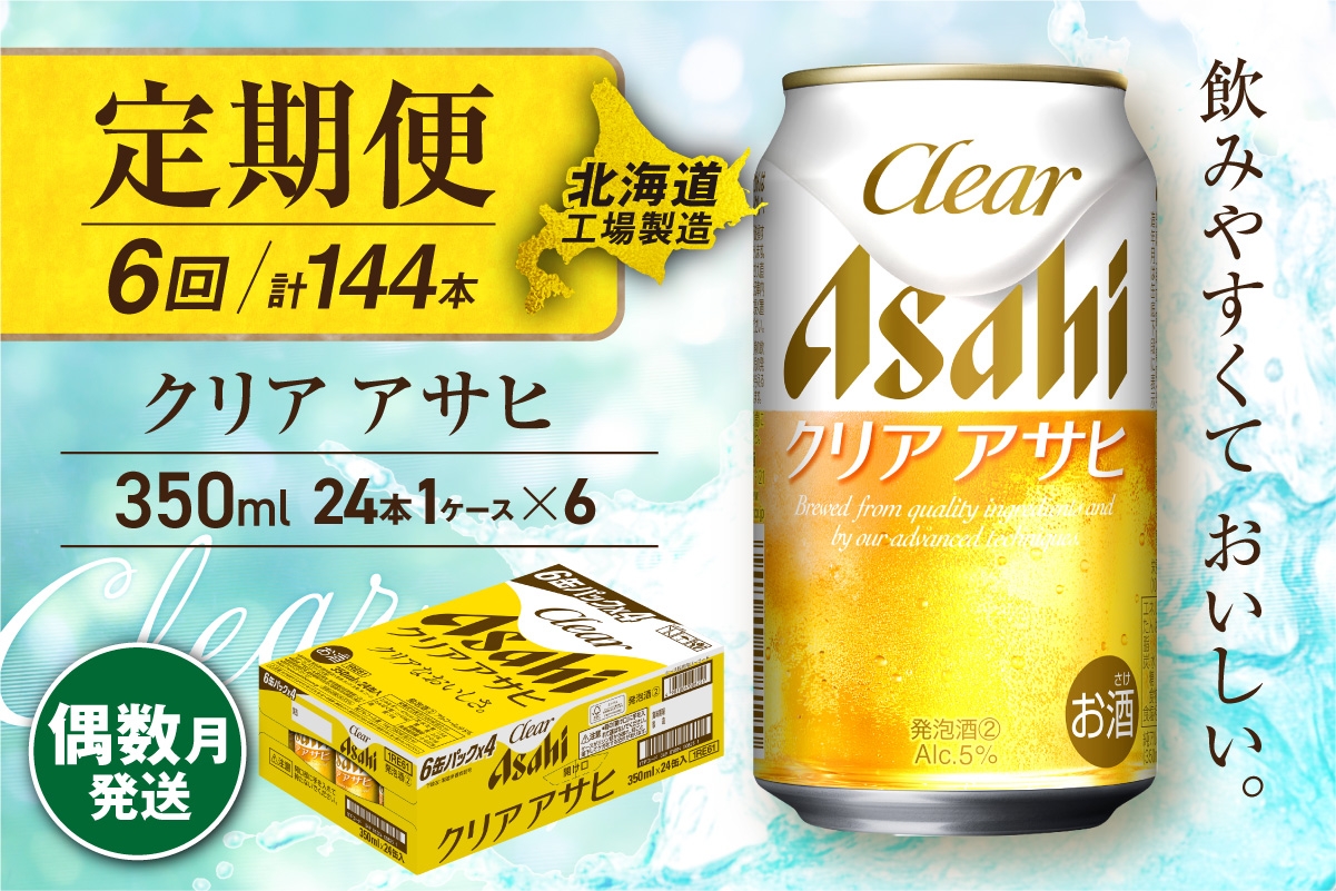 【定期便6回・偶数月発送】クリアアサヒ<350ml>24缶 1ケース 北海道工場製造 缶ビール ビール すっきり うまみ 晴れやか 北海道ビール工場製造 ビール定期便 アサヒビール 北海道 札幌市