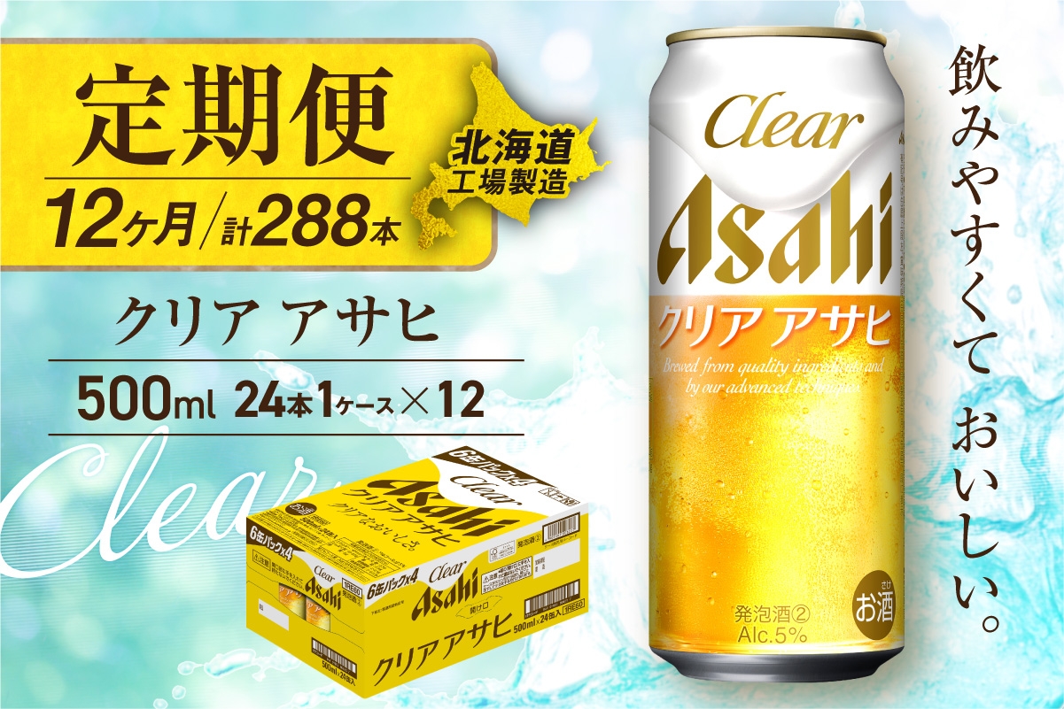クリアアサヒ<500ml>24缶 1ケースが12か月間・毎月届く定期便コース