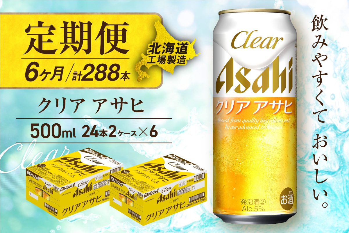 【定期便 6ヶ月】クリアアサヒ<500ml>24缶 2ケース 北海道工場製造 缶ビール ビール すっきり うまみ 晴れやか 北海道ビール工場製造 ビール定期便 アサヒビール 北海道 札幌市