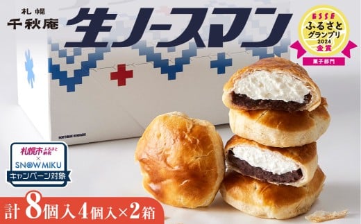 《雪ミクコラボ開催中!!》TVで話題! ◆オンラインでのお取り寄せは札幌市ふるさと納税だけ!◆《高評価★》TVで話題! ~金賞受賞~ ESSE ふるさとグランプリ2024 千秋庵・生ノースマン 4個入り 2箱 (合計8個) 札幌千秋庵 銘菓 饅頭 あんこ 菓子 ギフト 贈答 お土産 冷凍 北海道 札幌市|札幌市ふるさと納税×雪ミク コラボキャンペーン対象返礼品
