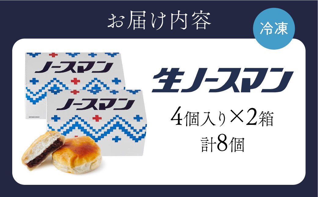 ~昔ながらのノースマンに生クリームをたっぷり入れた和洋折衷のパイまんじゅうです~ 《雪ミクコラボ開催中!!》TVで話題! ◆オンラインでのお取り寄せは札幌市ふるさと納税だけ!◆《高評価★》TVで話題! ~金賞受賞~ ESSE ふるさとグランプリ2024 千秋庵・生ノースマン 4個入り 2箱 (合計8個) 札幌千秋庵 銘菓 饅頭 あんこ 菓子 ギフト 贈答 お土産 冷凍 北海道 札幌市|札幌市ふるさと納税×雪ミク コラボキャンペーン対象返礼品
