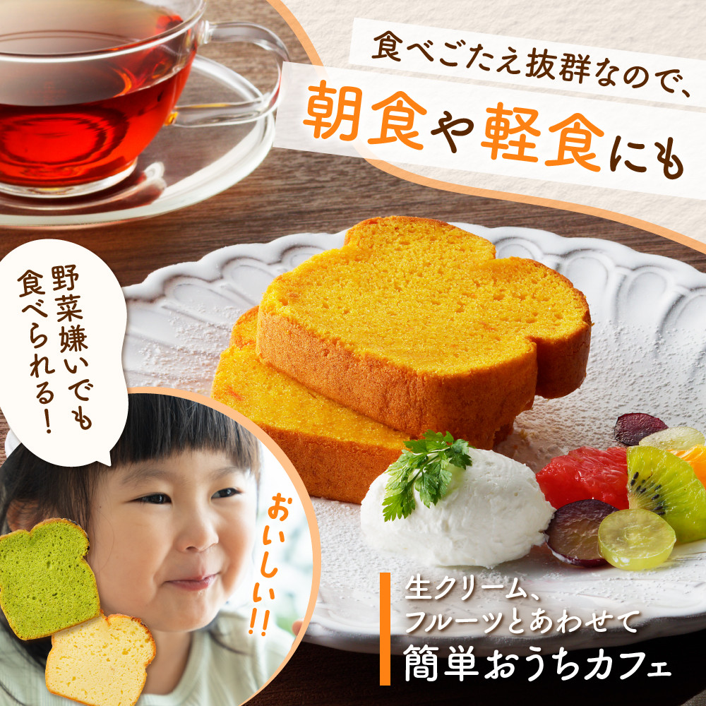 ケーキは添加物を極力抑え、人工着色料を一切使用していません。北海道産の小麦、甜菜糖、バター、卵を厳選して使用し、素材の自然な美味しさを生かしています。お子様にも野菜を楽しみながら摂る方法として最適であり、朝食や軽食としてもお楽しみいただけます。