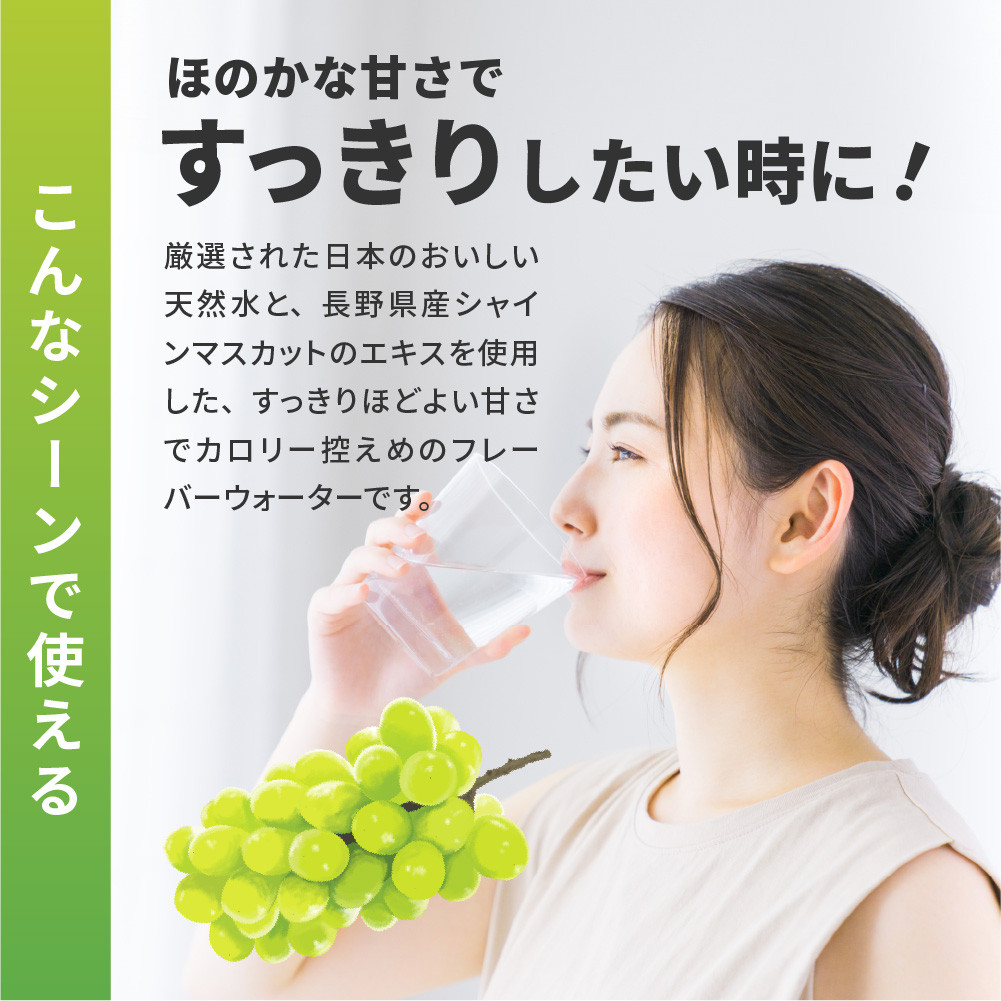 厳選された日本のおいしい天然水と、長野県産シャインマスカットエキスを使用した『い・ろ・は・す シャインマスカット』がリニューアルして登場です。