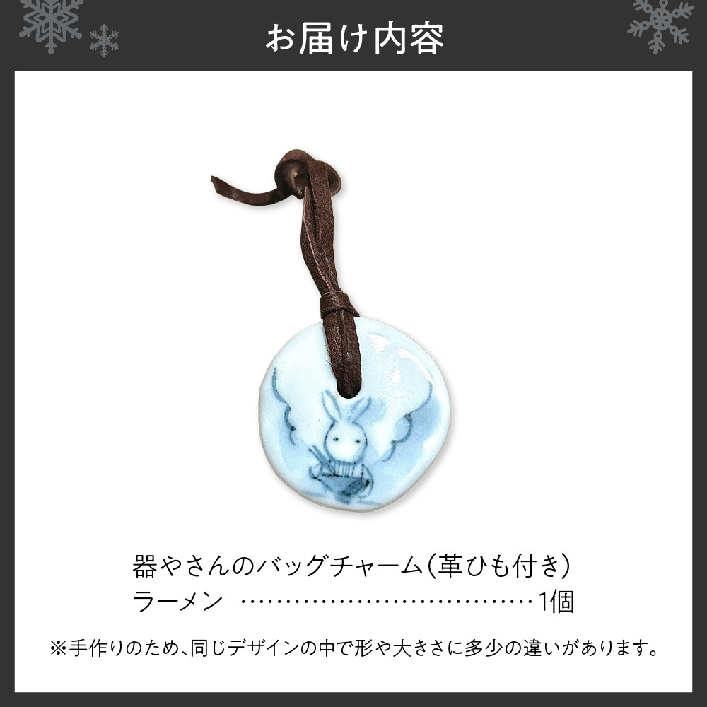 ~札幌発のやきもののチャーム。キーホルダーやバッグのマーキングに最適です~ 器やさんのバッグチャーム(革ひも付き)・ラーメン