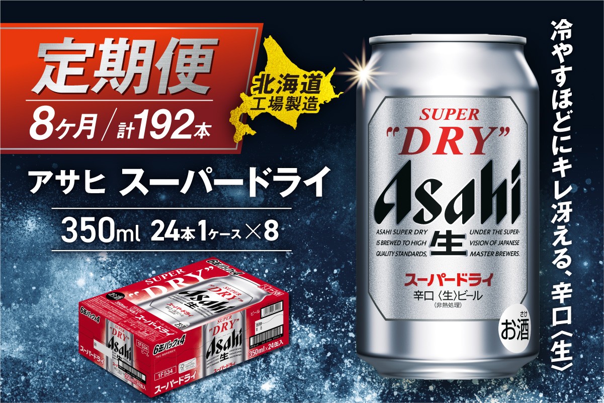 【定期便 8ヶ月】アサヒスーパードライ<350ml>24缶 1ケース 北海道工場製造 定期配送 毎月届くビール 北海道 アサヒビール スーパードライ アサヒ 酒 アルコール 生ビール 缶 贈答 北海道 札幌市