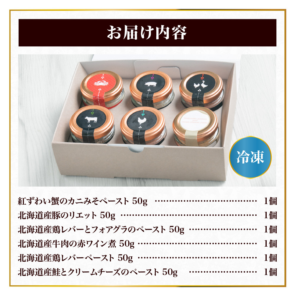 ■関連キーワード:パテ リエット 6種 詰め合わせ セット 北海道産 鶏レバー ペースト 牛肉 赤ワイン煮 豚 フォアグラ 鮭 クリームチーズ カニみそ 蟹みそ 紅ずわい蟹 シャルキュトリー ワインに合う お取り寄せ 食べ比べ グルメ おつまみ パーティー ギフト 北海道 札幌市