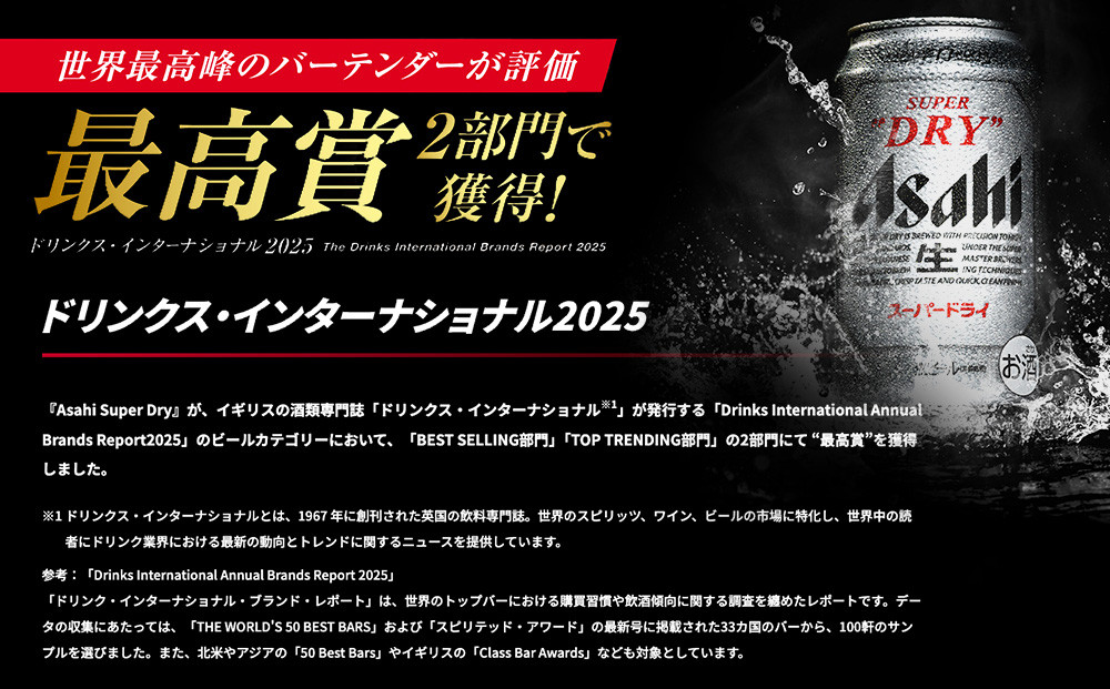 ■ご寄付から3日以内に発送いたします。 ※土日・祝日にご寄付頂いた場合は翌営業日からの3日以内の発送となりますのでご了承下さい。 【アサヒスーパードライ】 ◆北海道の良質な水と厳選された原料を使用 ◆洗練されたクリアな味、辛口 ◆スッキリと上品な苦み 北海道工場にて、従業員一同、真心をこめて美味しいビールを製造いたします。 アサヒビール北海道工場は札幌市内唯一の大規模(年間5万KL以上製造)ビール工場です。 ■注意事項 ※外箱や缶に初期傷、輸送中における擦り傷やへこみなど多少のダメージが生じる可能性がございます。 ※日付指定及び時間指定は承っておりませんので、了承ください。 ※掲載画像とデザインが変更となる場合がございます。 ※製造より7か月以内のビールをお届けします。(ビールの消費期限は9か月となっており、品質に問題はございません。) ※20歳未満の飲酒は法律で禁止されています。20歳未満のお申し込みはご遠慮ください。 ※箱が壊れやすいため、テープで補強している場合がございます。 ※複数ご寄付された場合、返礼品が別々に届く場合がございます。 ※画像はイメージです。 ※受注状況により発送にお時間を頂く場合がございます。 ■関連キーワード:【最短翌日発送】アサヒスーパードライ<350ml>24缶 1ケース 北海道工場製造 生ビール 缶 ビール アルコール5% 辛口 贈答 ギフト アサヒビール すぐ届く 北海道 札幌市