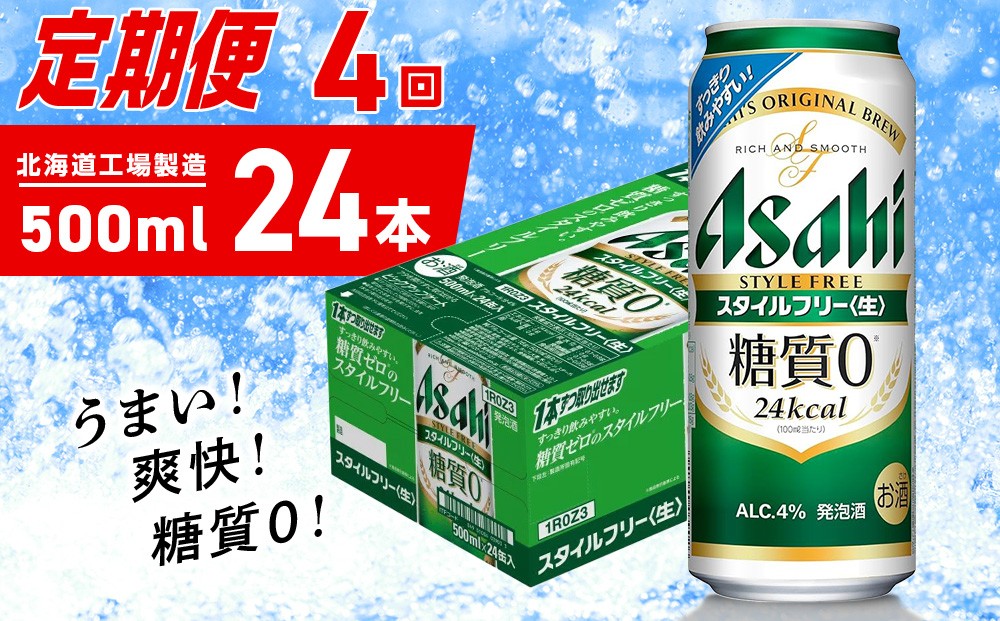 【定期便 4ヶ月】アサヒ スタイルフリー<生><500ml>24缶 1ケース 北海道工場製造 缶ビール ビール 発泡酒 糖質ゼロ ビール工場製造 ビール定期便 北海道 札幌市