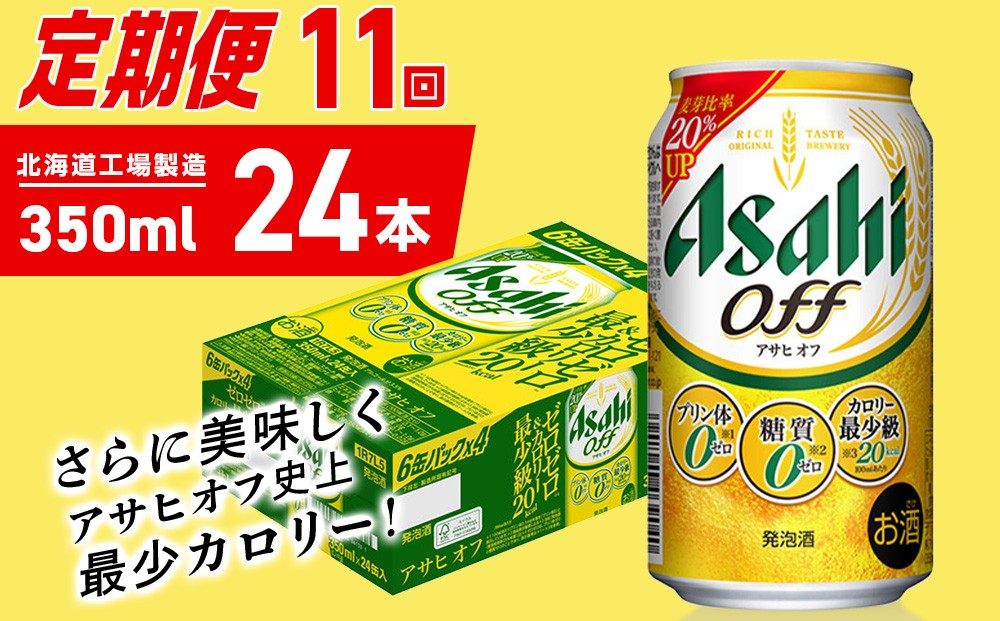 【定期便 11ヶ月】アサヒ オフ<350ml>24缶 1ケース 北海道工場製造 缶ビール ビール 糖質ゼロ プリン体ゼロ 人工甘味料ゼロ 北海道ビール工場製造 ビール定期便 アサヒビール 北海道 札幌市